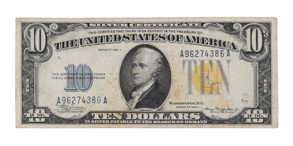 1934 A United States $10 Ten Dollar Silver Certificate Banknote