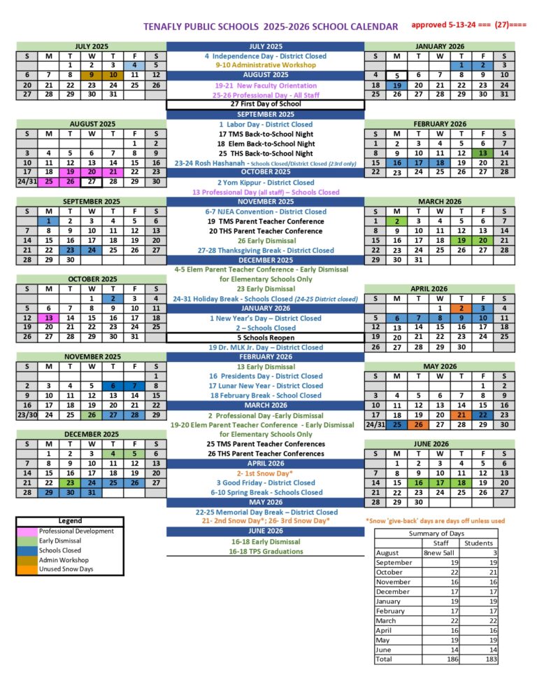 Tenafly Public Schools Calendar 2025 2026 Middle Schools