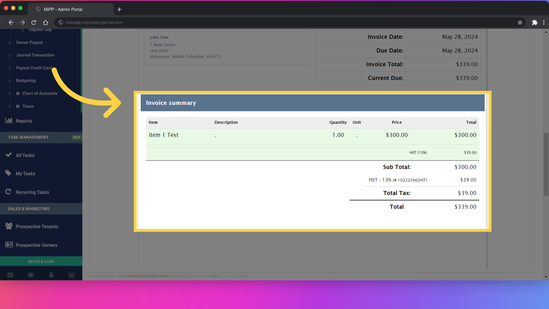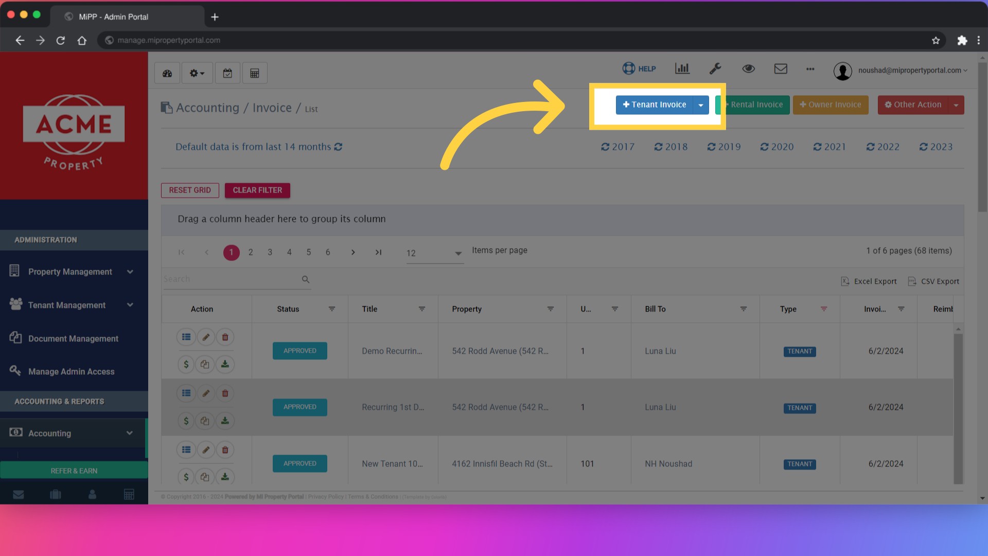How to create a Tenant Invoice? Mi Property Portal Help Center