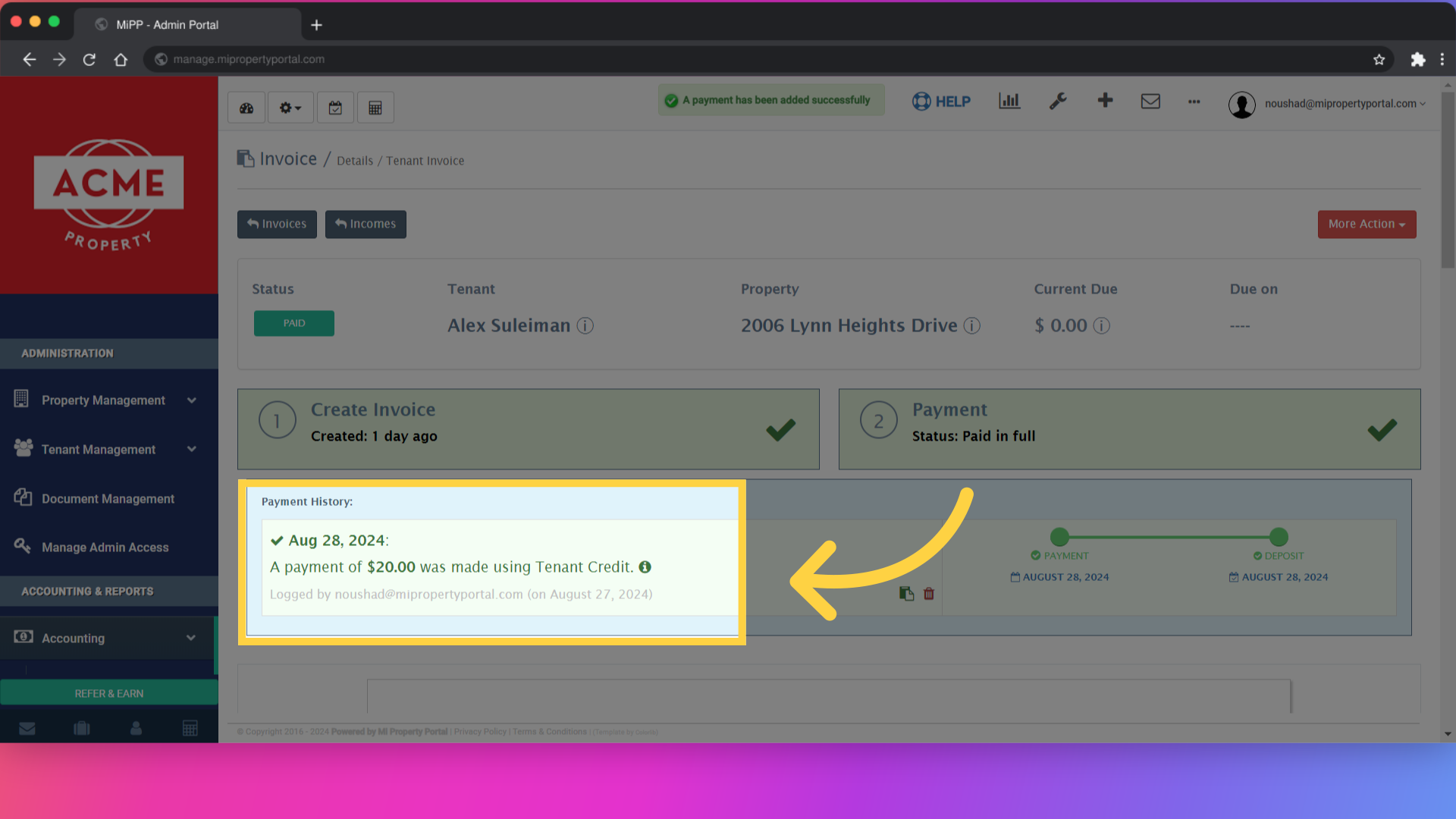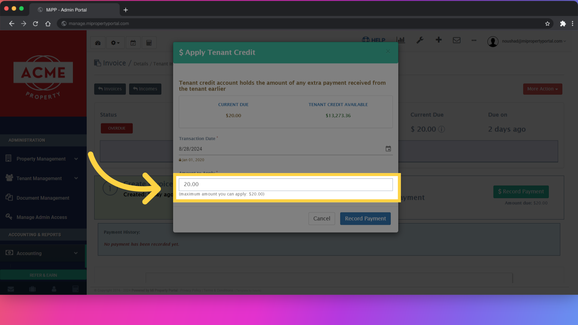 How to Adjust Tenant Invoice with Tenant Credit? Mi Property Portal