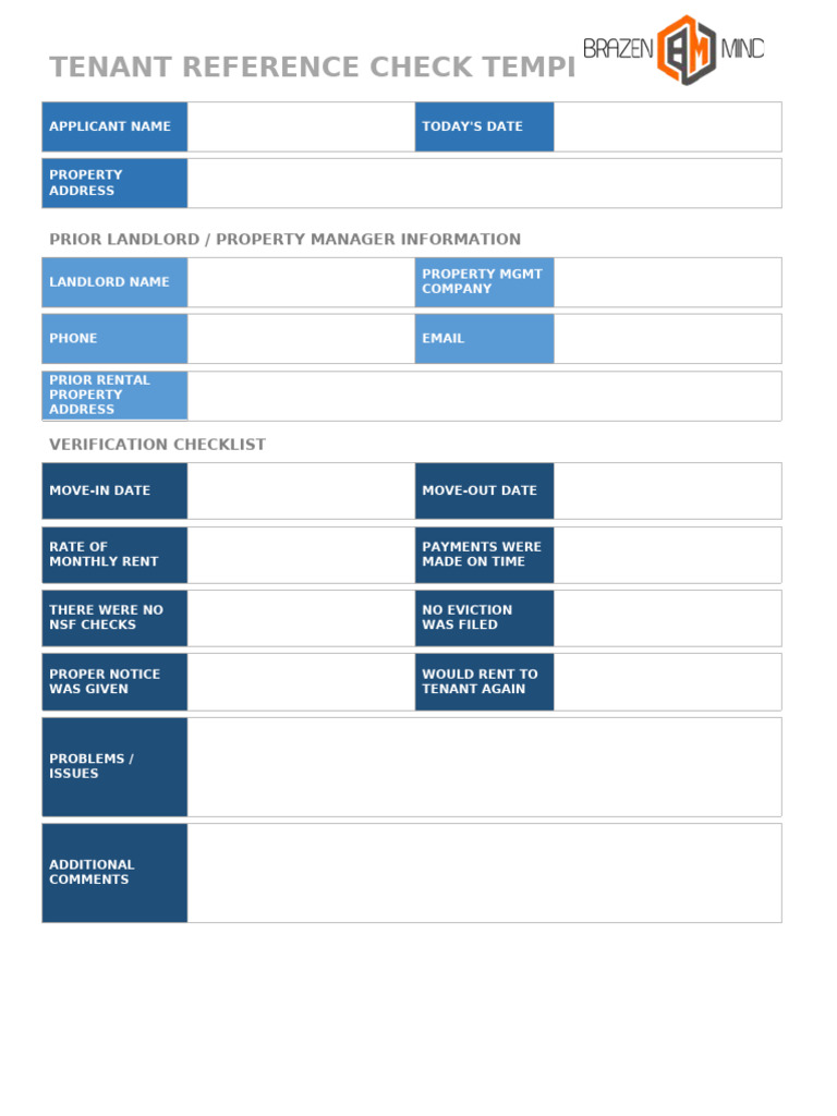 Tenant Reference Check Template