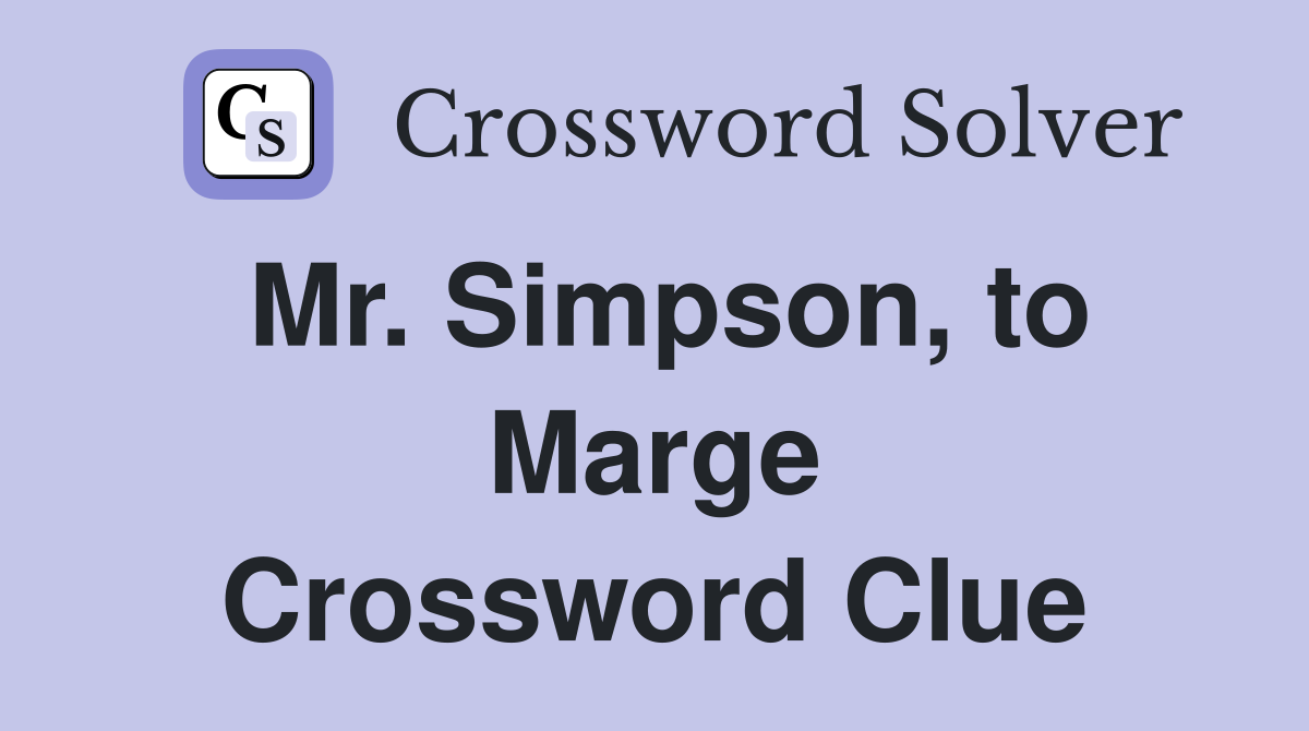 Mr Simpson to Marge Crossword Clue Answers Crossword Solver