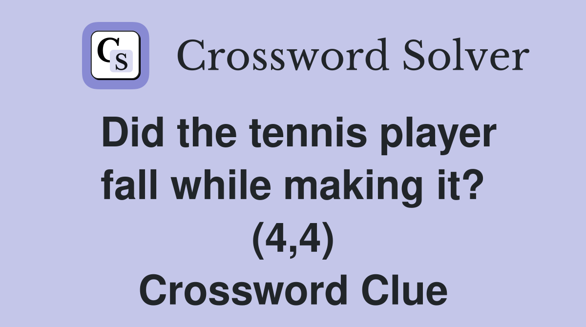 Did the tennis player fall while making it? (4 4) Crossword Clue