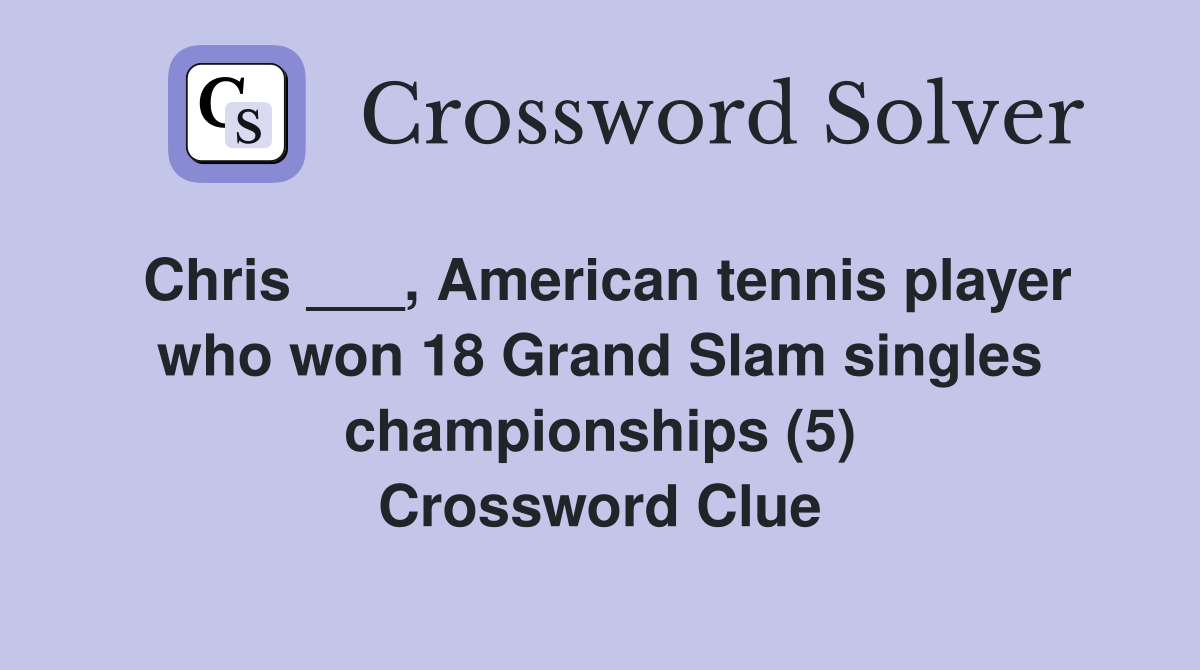 Here are some of the images for Tennis Great Chris Crossword that we found in our website database.