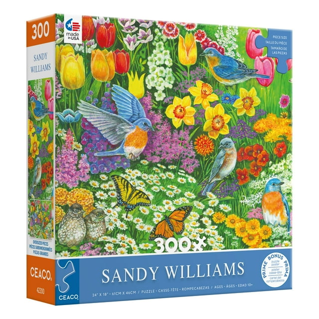 Ceaco Sandy Williams 300 Piece Bluebird Garden Jigsaw Puzzle Bonus