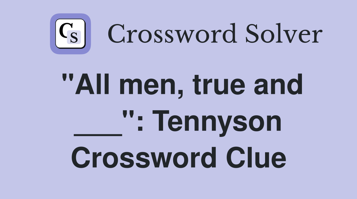 quot All men true and quot : Tennyson Crossword Clue Answers Crossword