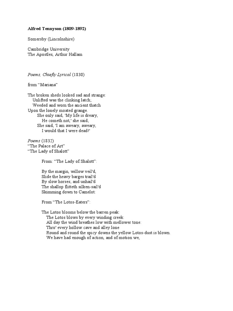 Alfred Tennyson (1809 1892) : Poems Chiefly Lyrical (1830) PDF Poetry