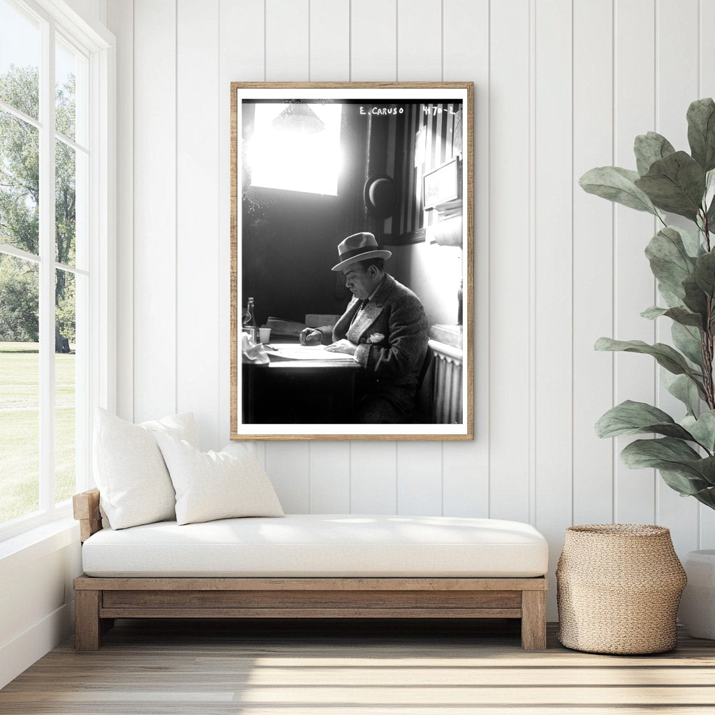 This photograph captures the famous Italian tenor Enrico Caruso with