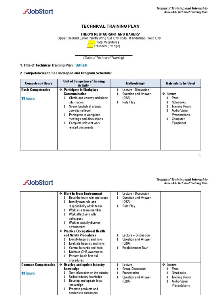 Session Plan: Basic Competencies (62 Hours) PDF Lecture Test