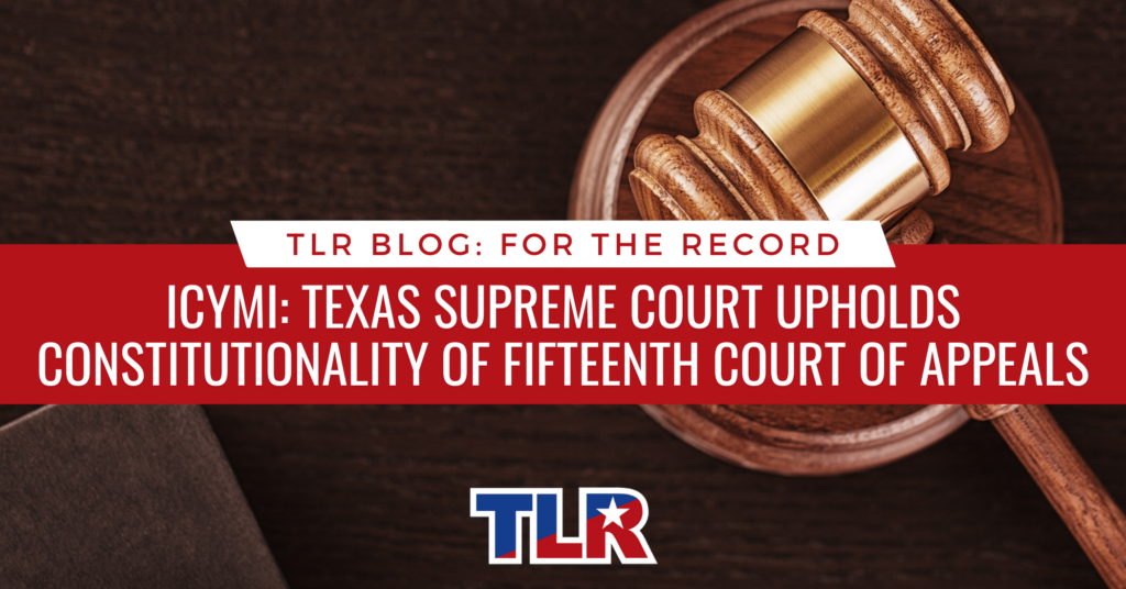 ICYMI: Texas Supreme Court Upholds Constitutionality of Fifteenth Court