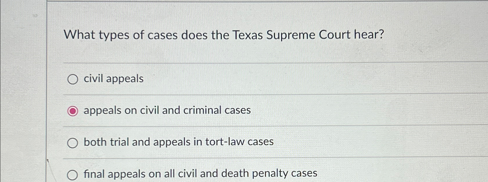 Solved What types of cases does the Texas Supreme Court Chegg com