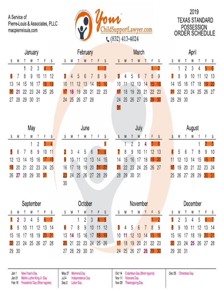 Texas SPO 2019 Calendar by YourChildSupportLawyer com