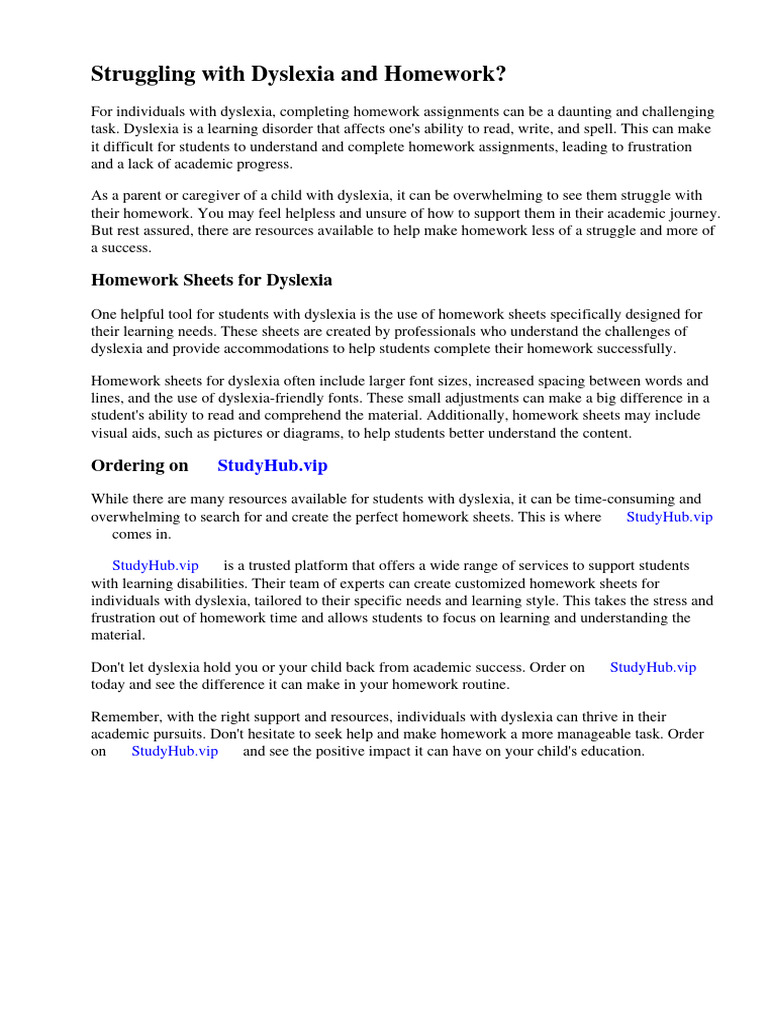 Dyslexia Homework Sheets Download Free PDF Dyslexia Homework