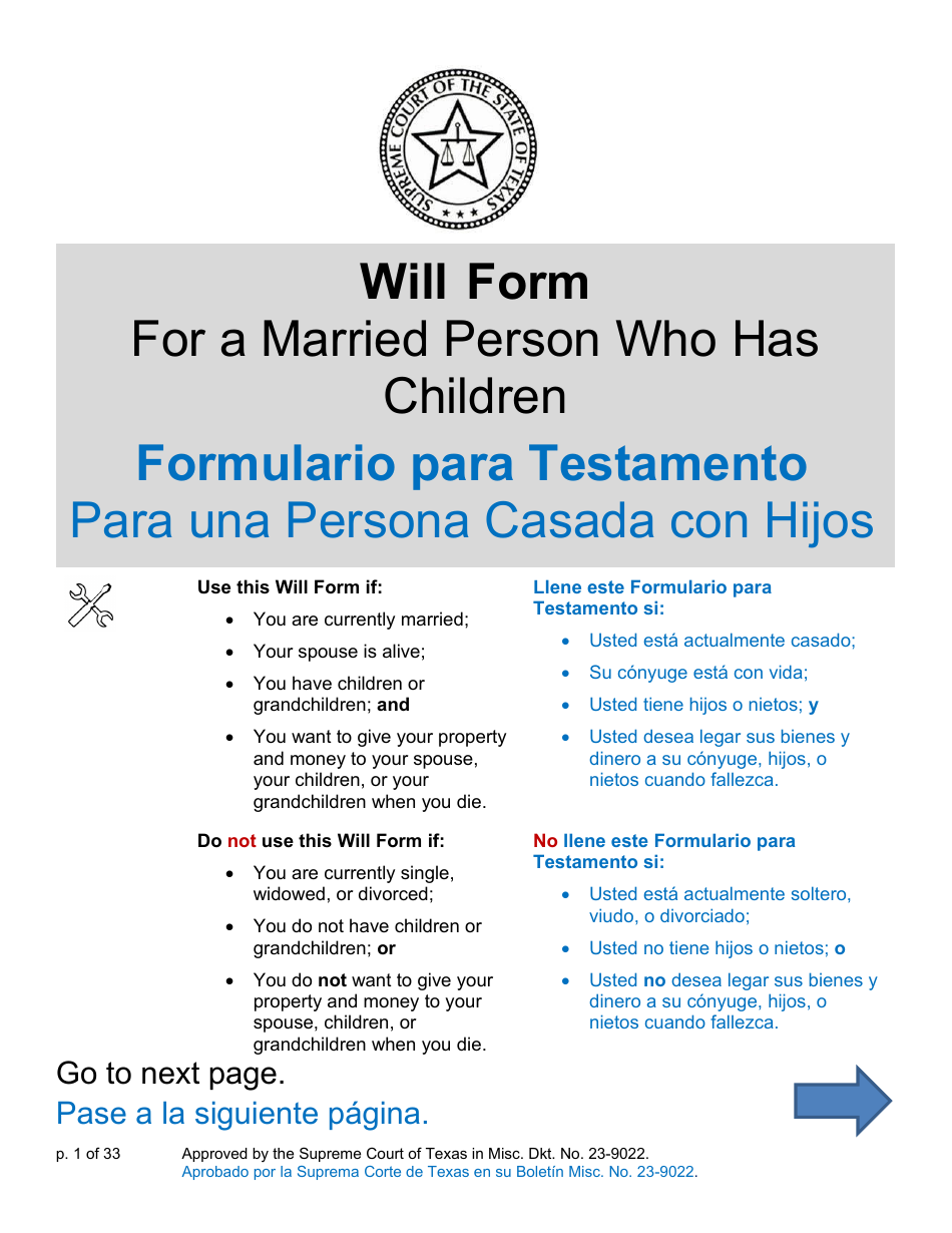 Texas Will Form for a Married Person Who Has Children (English/Spanish