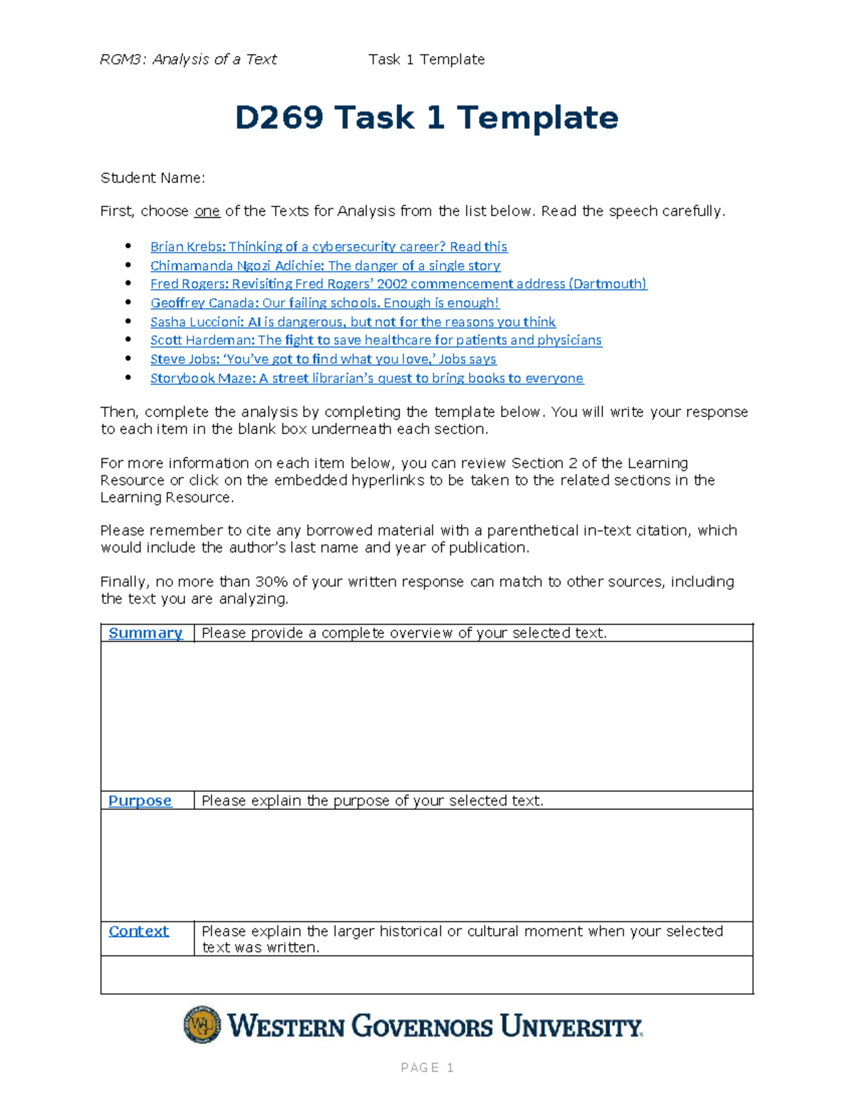 RGM3: Task 1 Text Analysis Template for Student Responses Studocu