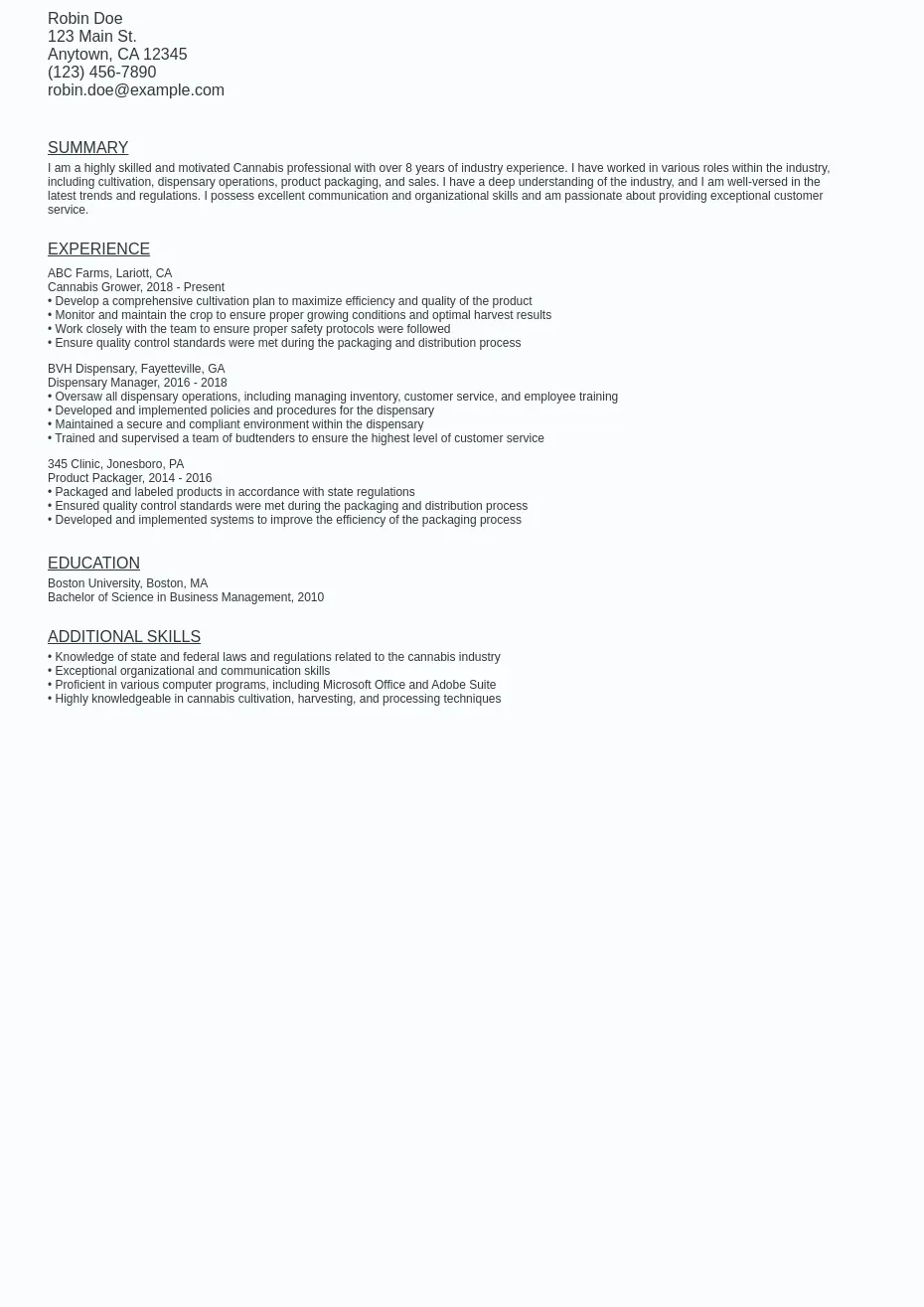 Cannabis Resume Sample Template (Free Download) Ziprecruiter