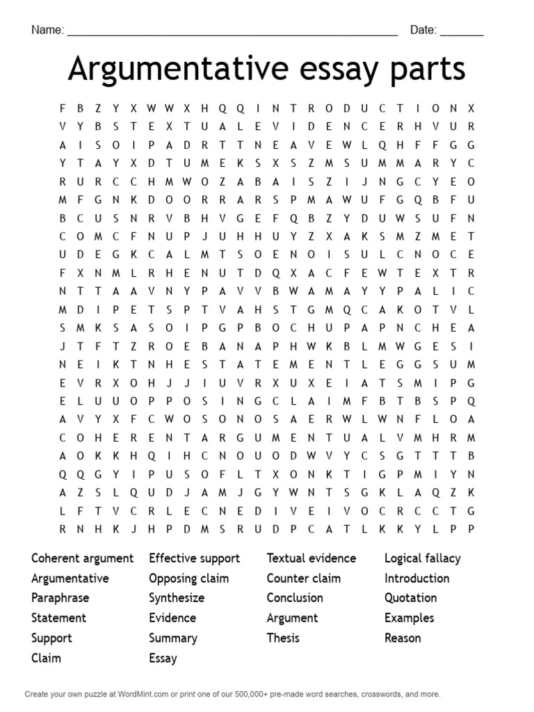 Argumentative Essay Parts d40c 6162e31a PDF Argument Crossword