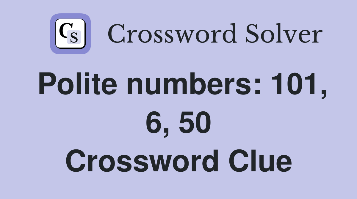 Polite numbers: 101 6 50 Crossword Clue Answers Crossword Solver
