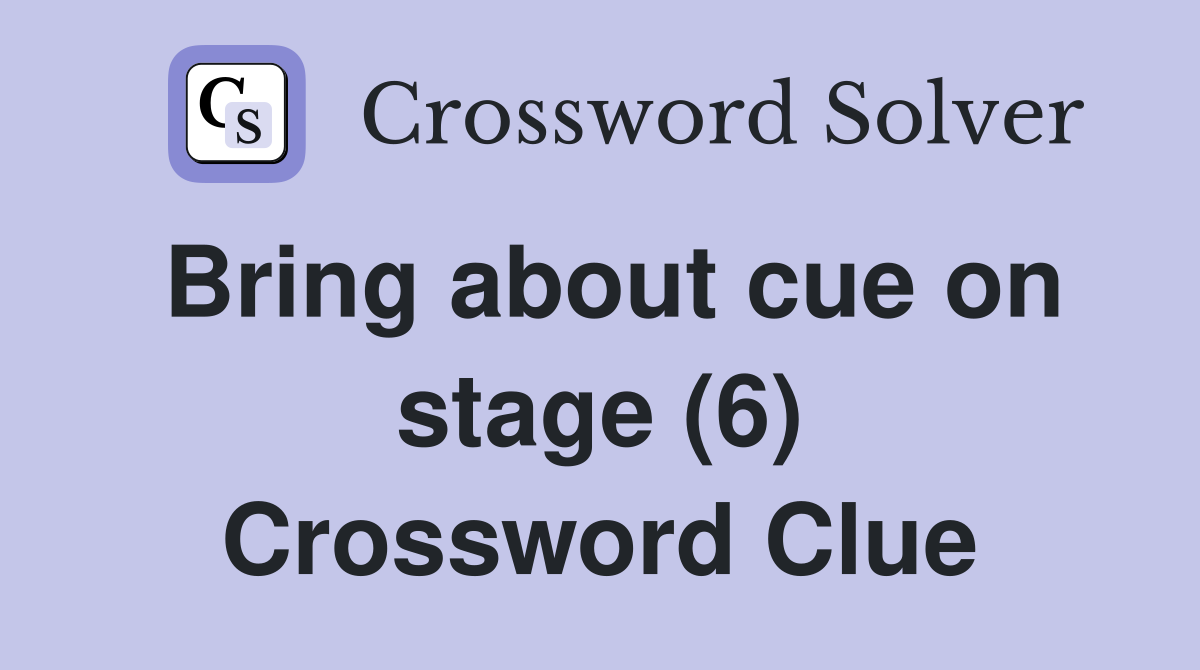 Bring about cue on stage (6) Crossword Clue Answers Crossword Solver