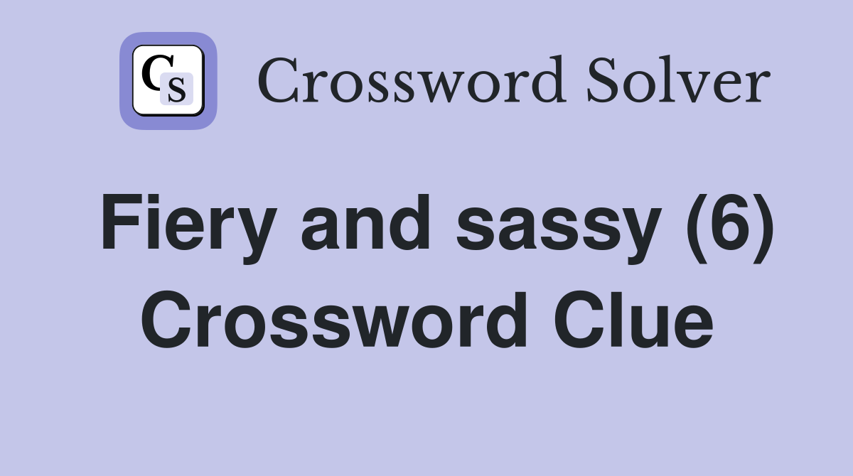 Fiery and sassy (6) Crossword Clue Answers Crossword Solver