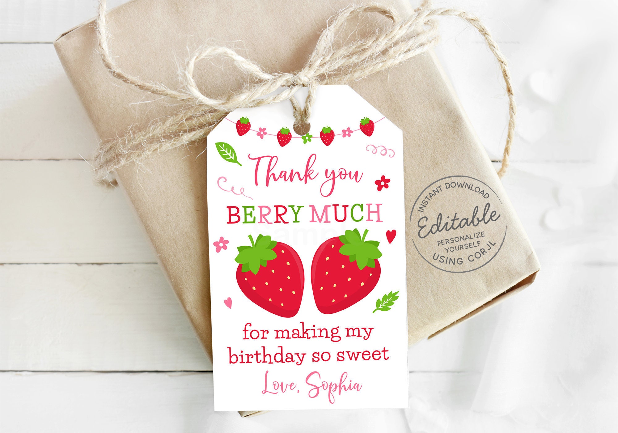 Printable and Editable Thank You Berry Much Gift Tag Strawberry Favor