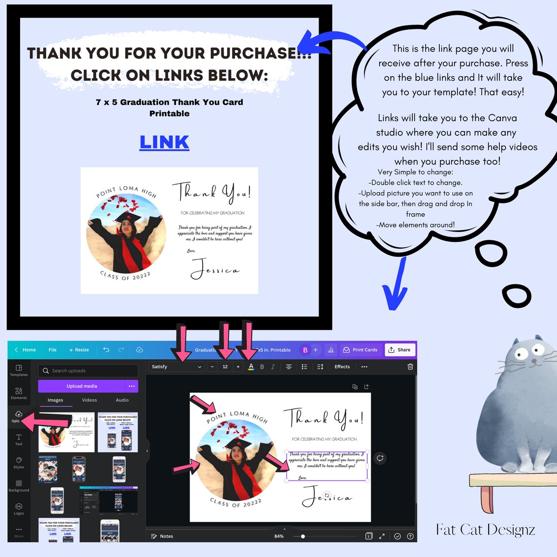 Graduation Thank You Card Template Printable Editable Etsy