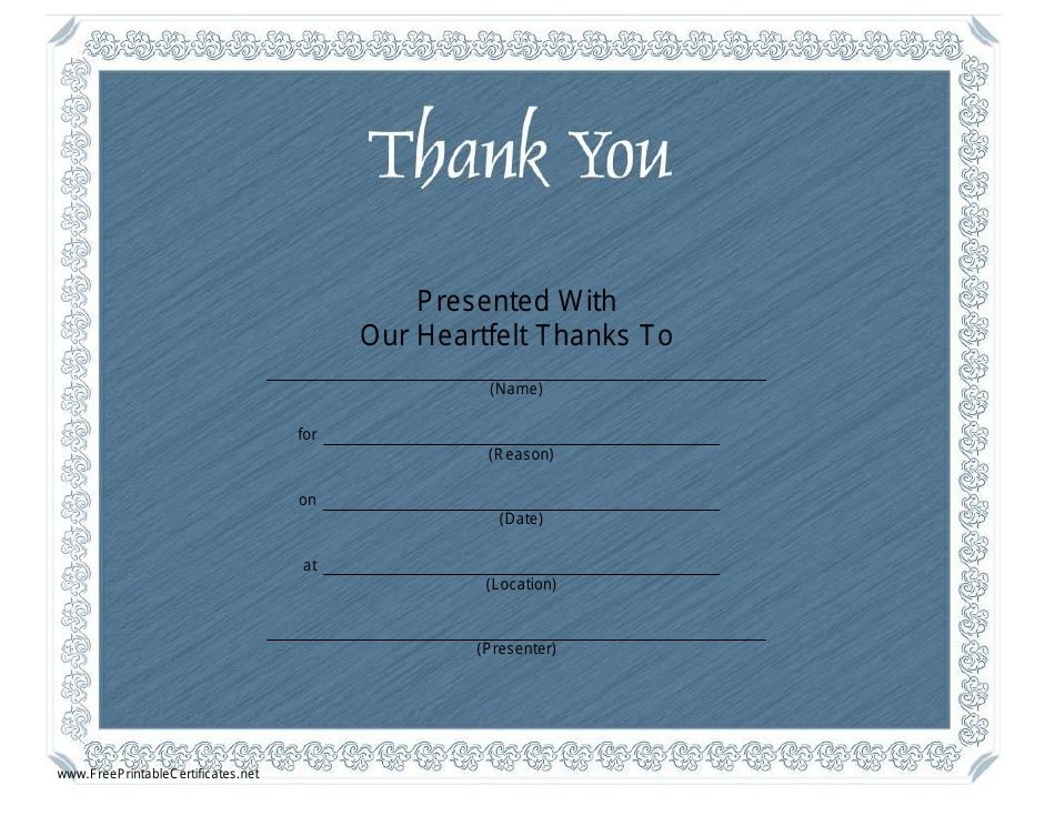 Thank You Certificate Template printable pdf download