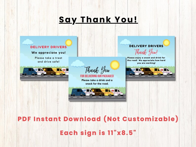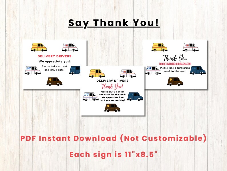 DELIVERY DRIVER Thank You SNACK Signs Bundle Delivery Snack Cart