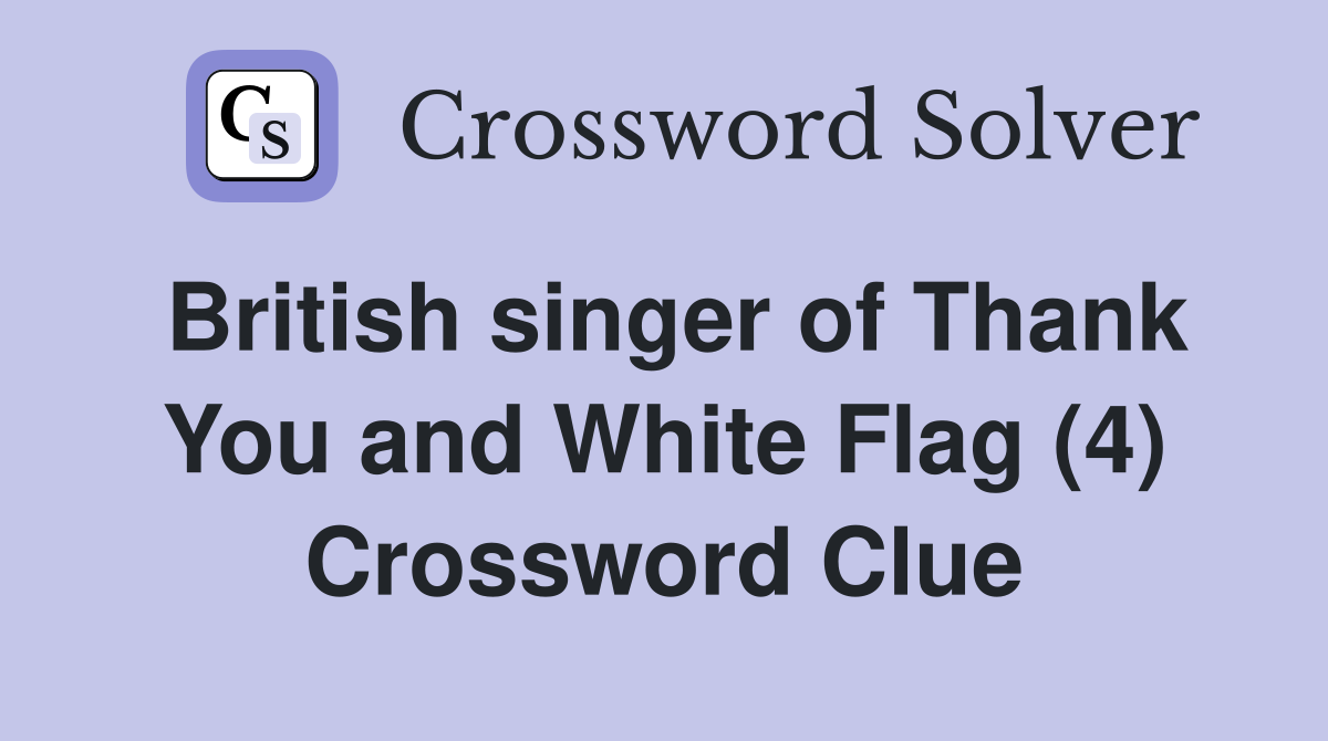 British singer of Thank You and White Flag (4) Crossword Clue Answers