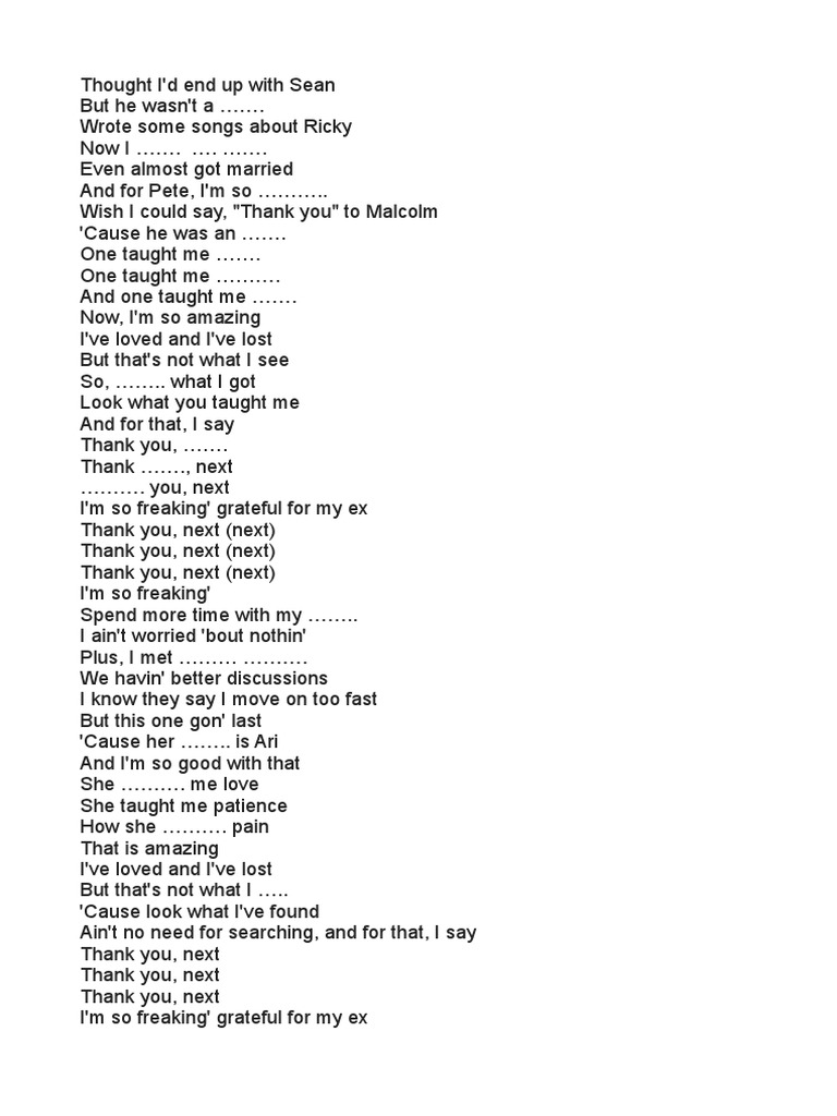 Thank U Next Lyrics PDF Song Structure Musical Forms