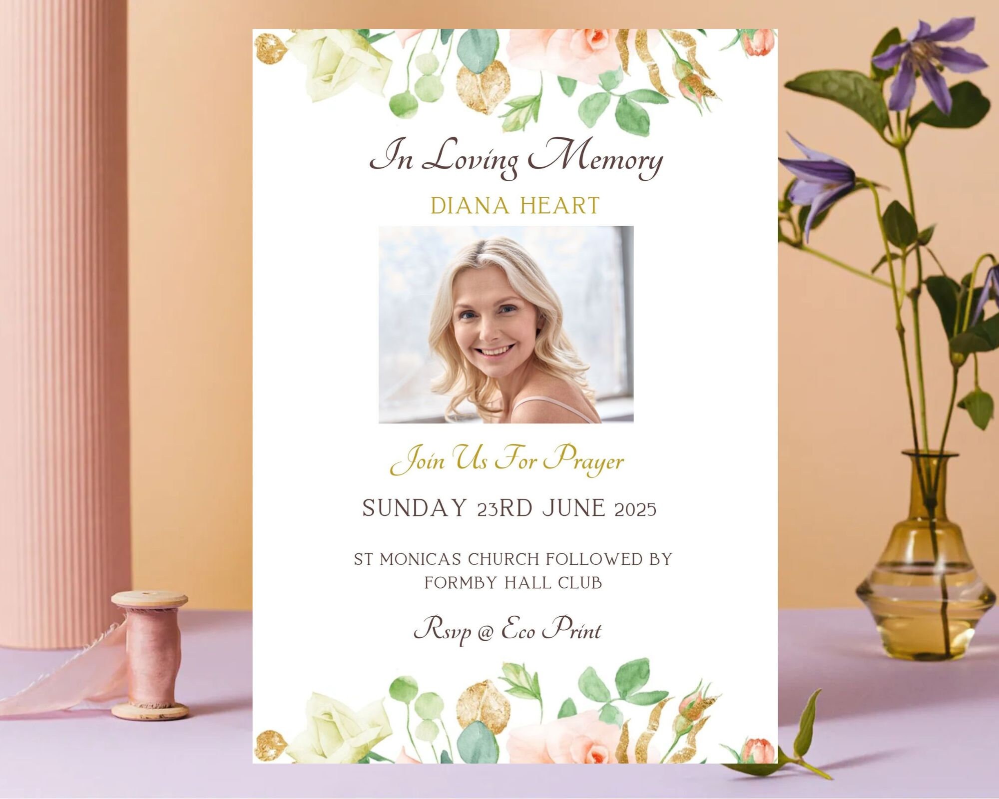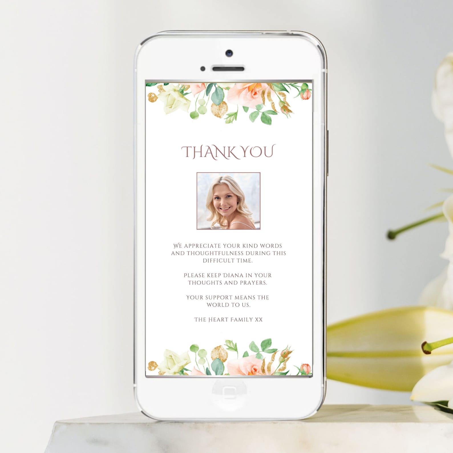 Greenery Funeral Thank You Card Template Thank You Notes Template