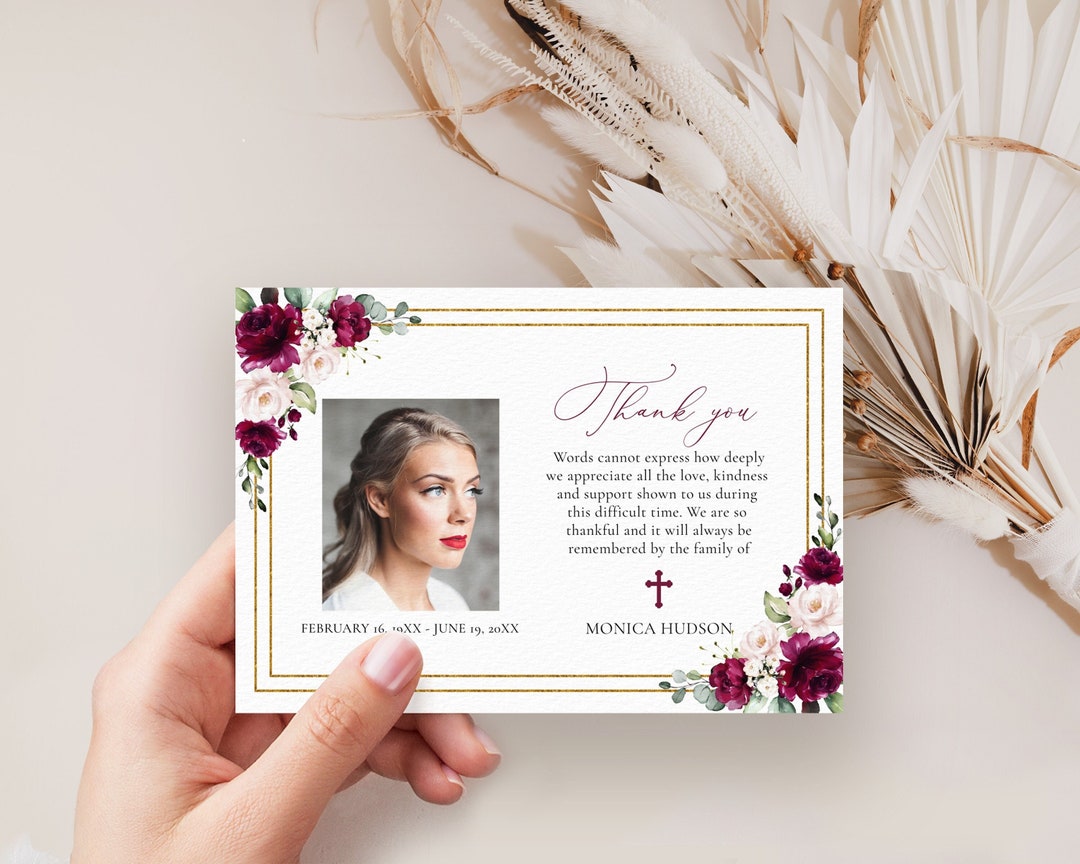 Funeral Thank You Card Template With Burgundy Roses Thank You Notes