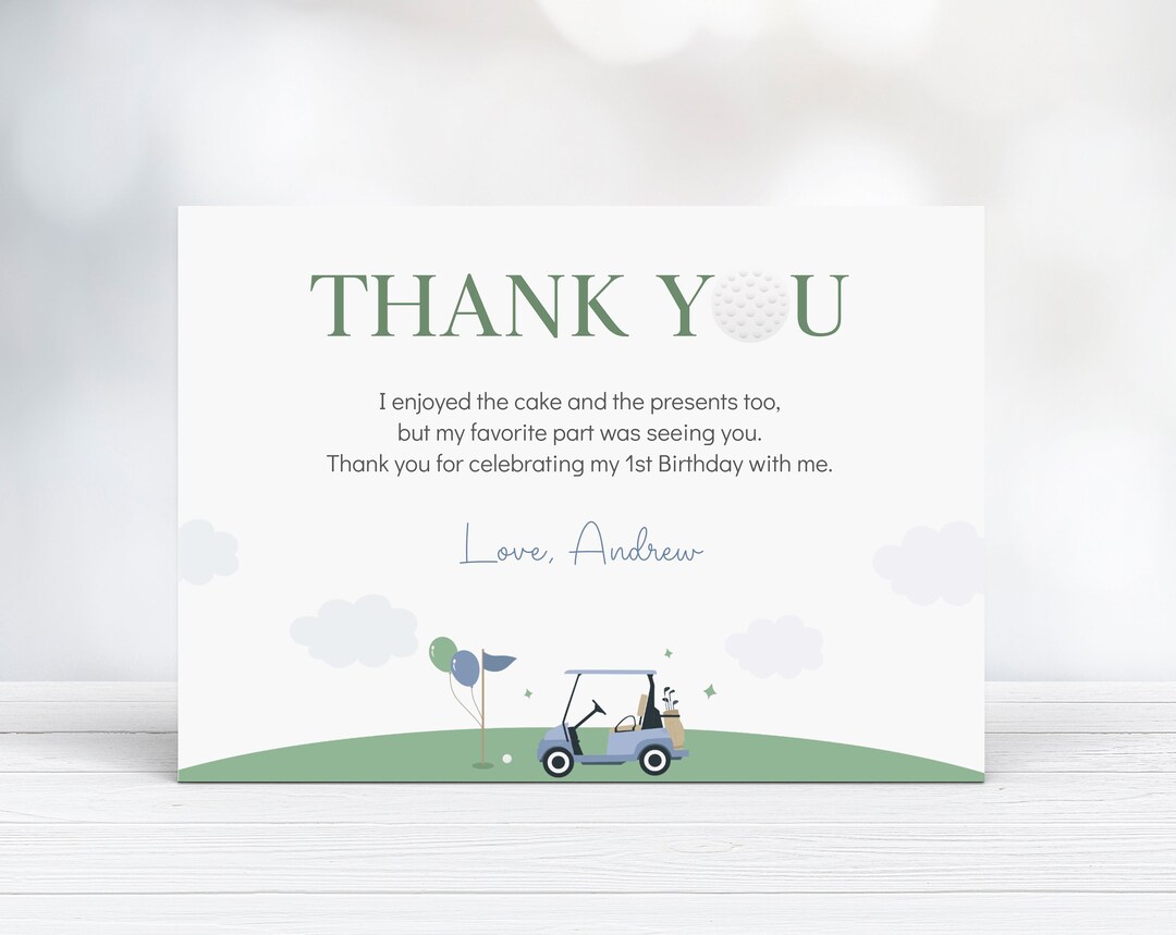 Golf Birthday Thank You Card Editable Hole in One Party Thank You Notes