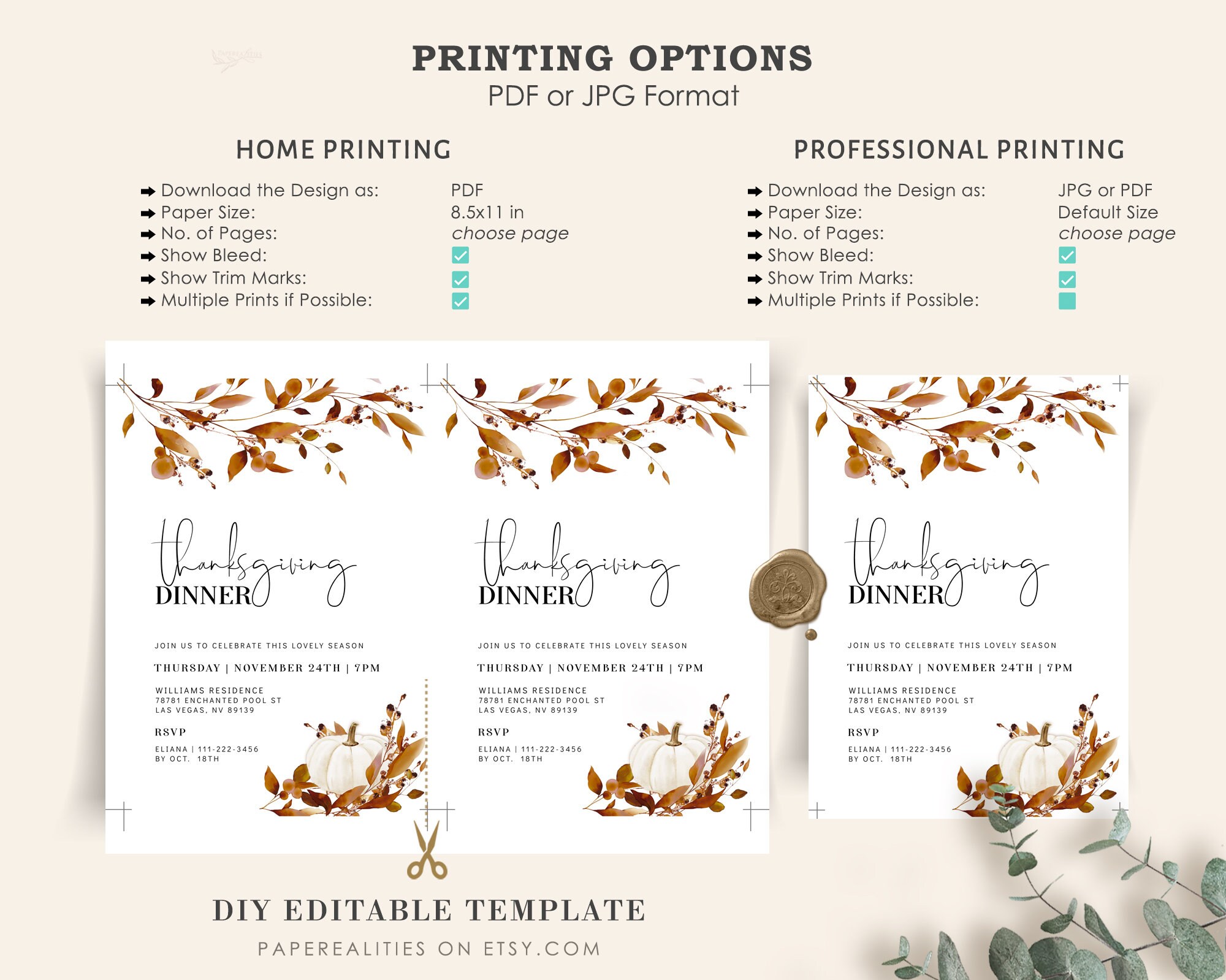 Thanksgiving Dinner Invitation Template Instant Download Editable