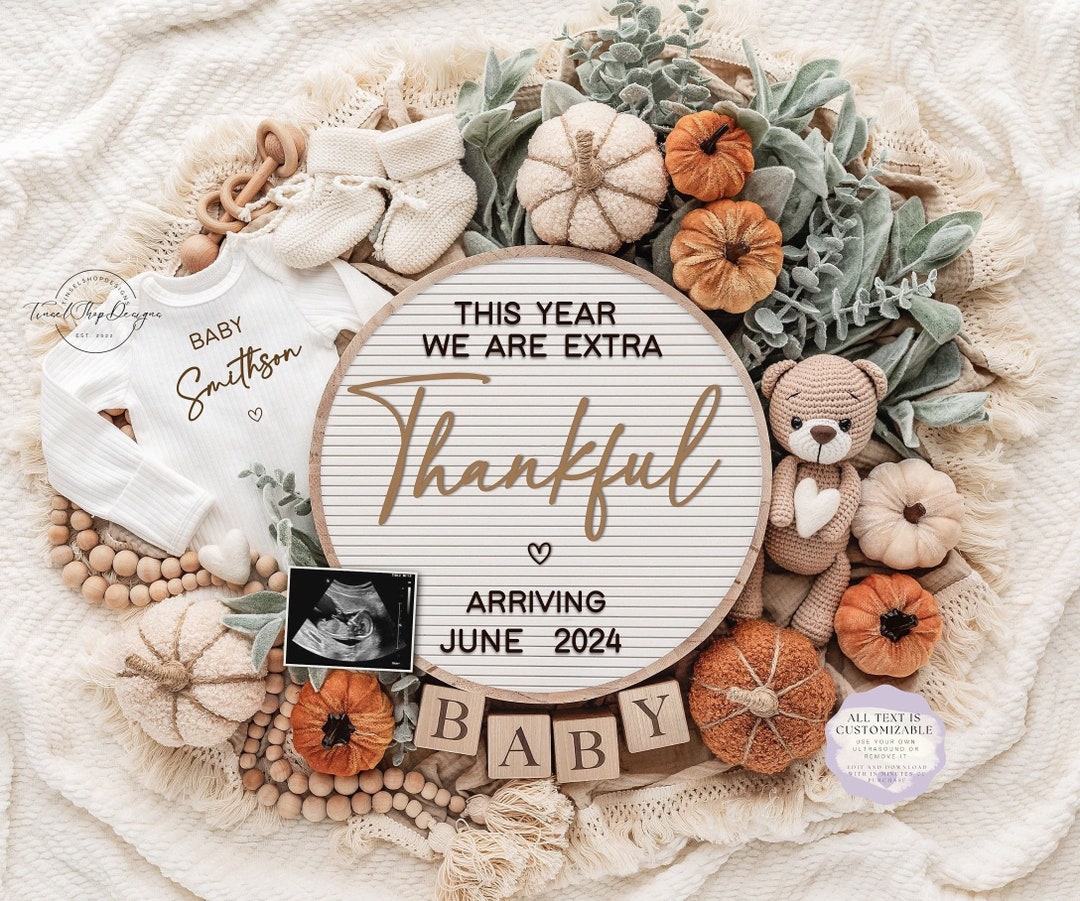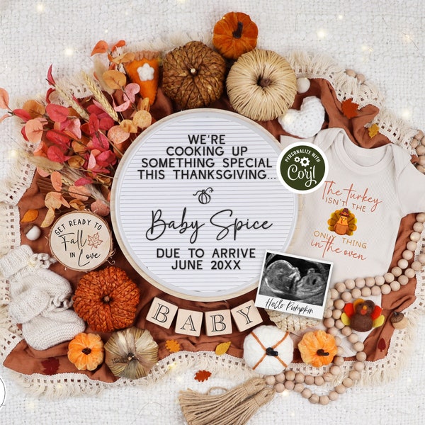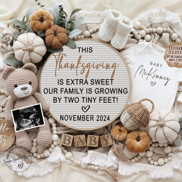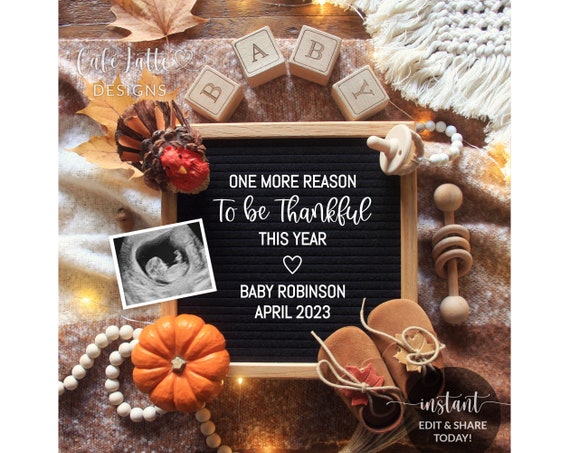 Thanksgiving Pregnancy Announcement Digital Editable Template Fall