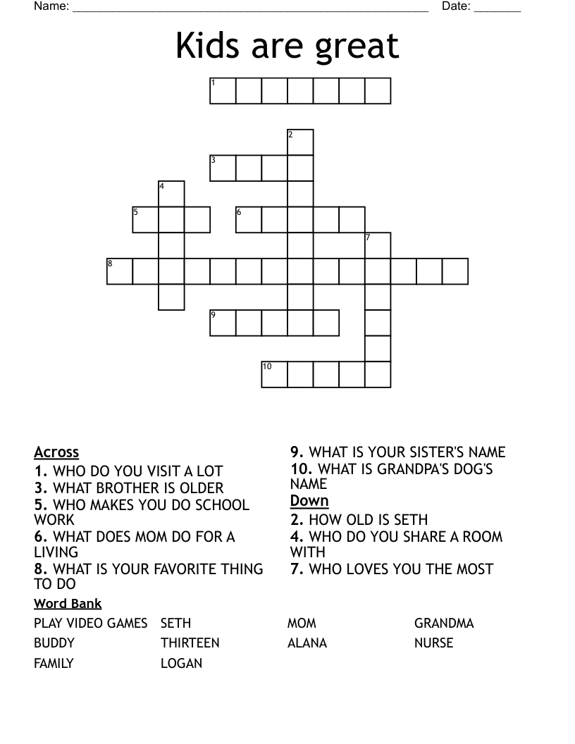 Kids are great Crossword WordMint
