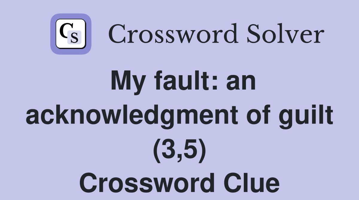 My fault: an acknowledgment of guilt (3 5) Crossword Clue Answers