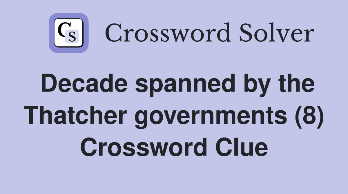 Decade spanned by the Thatcher governments (8) Crossword Clue Answers
