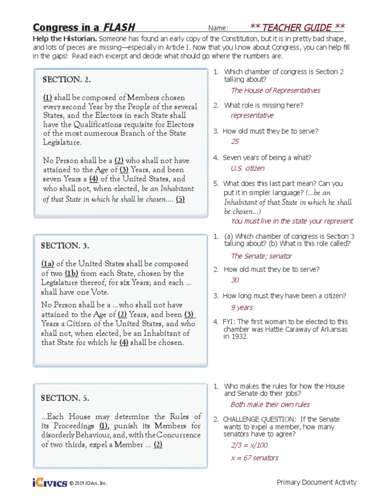 Congress In A Flash Worksheet Answers Key Icivics db excel com