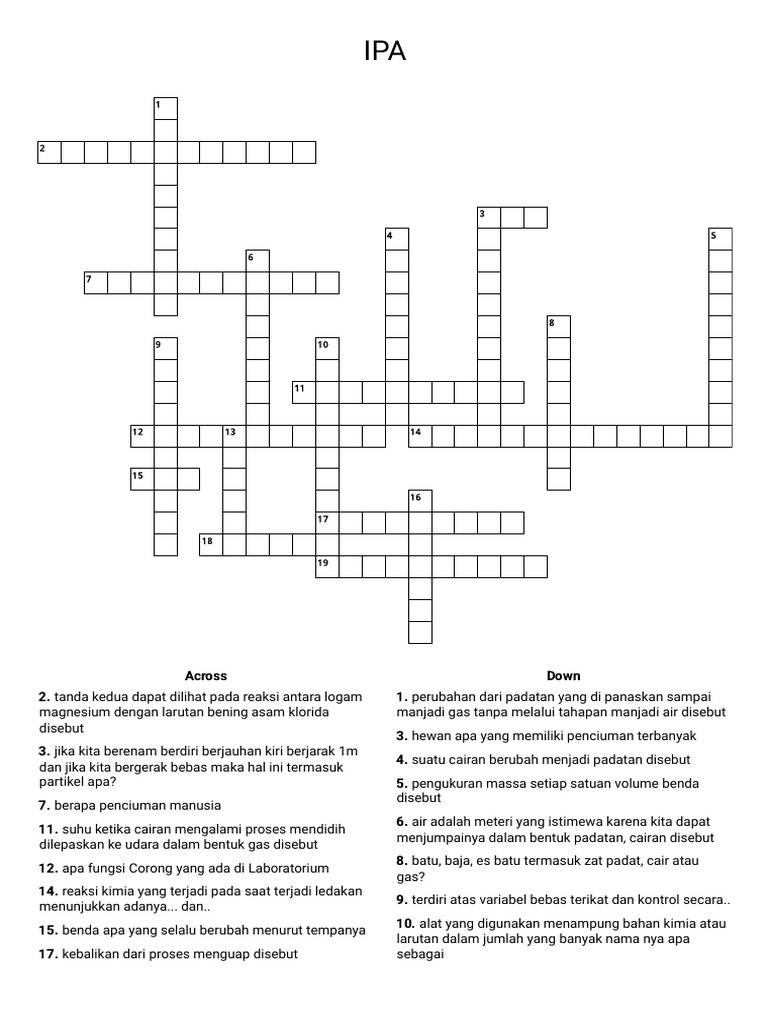 Crossword IPA Kelas 9 Crucigrama