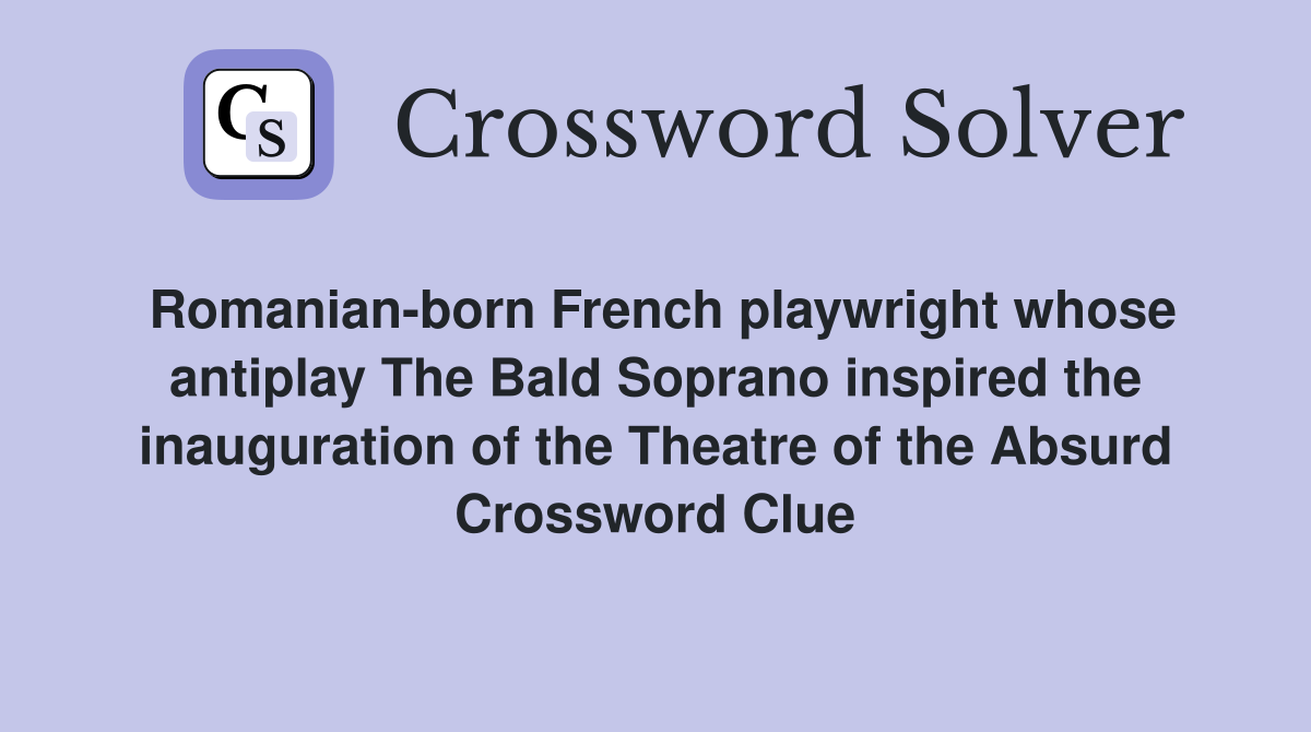 Here are some of the images for The Bald Soprano Playwright Crossword that we found in our website database.
