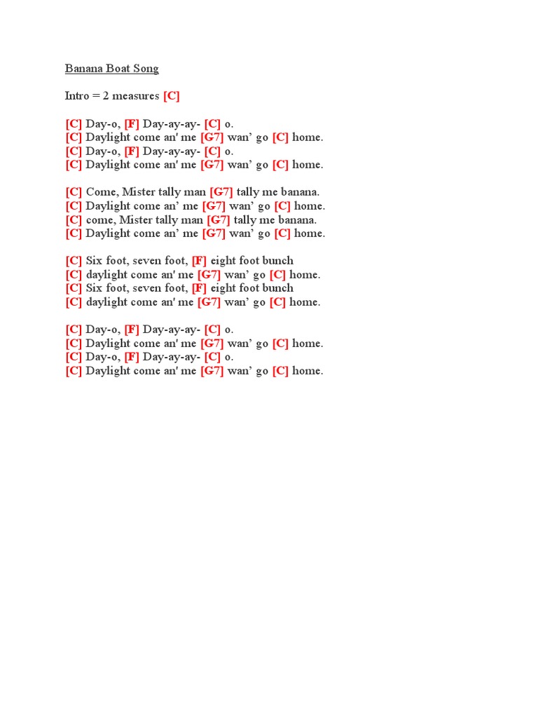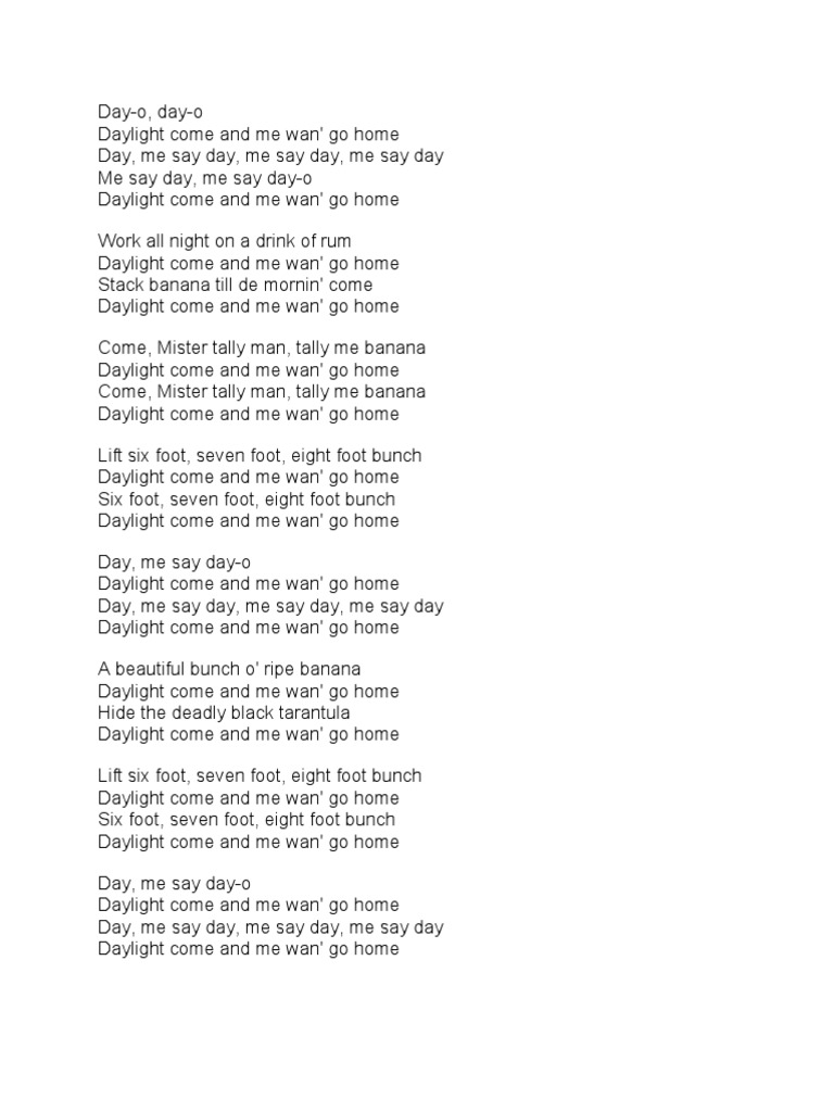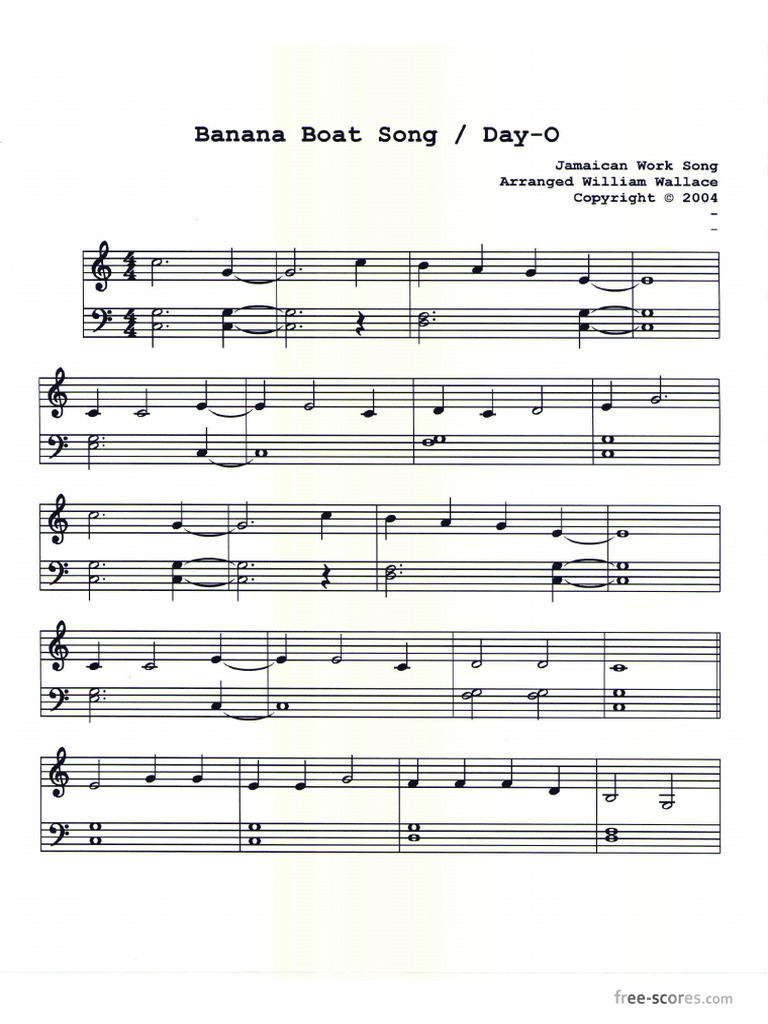 Banana Boat Song Day Jamaican Work Song 8157 PDF