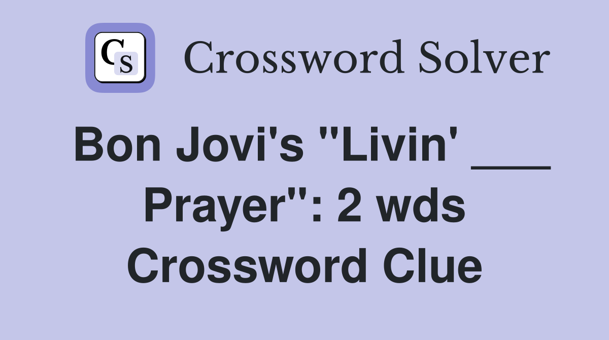 Bon Jovi #39 s quot Livin #39 Prayer quot : 2 wds Crossword Clue Answers