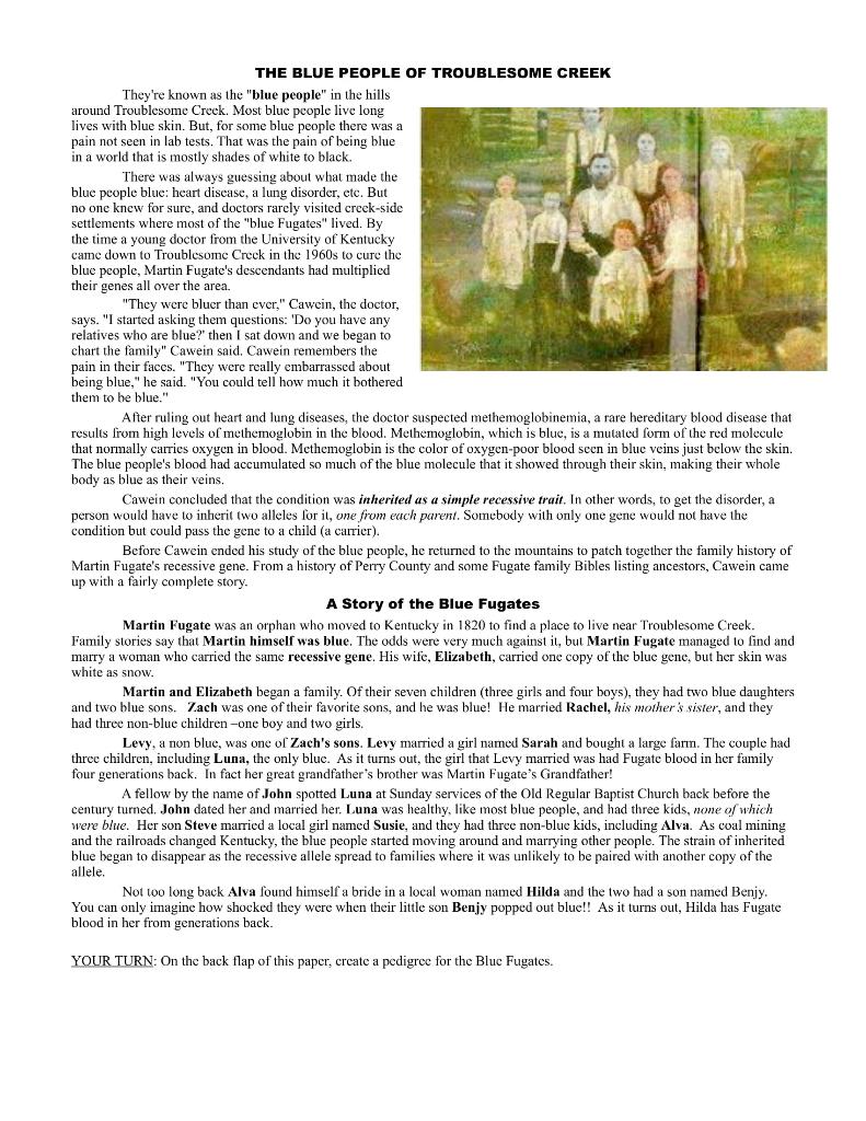 Blue people activity docx BLUE PEOPLE OF TROUBLESOME CREEK/PEDIGREES