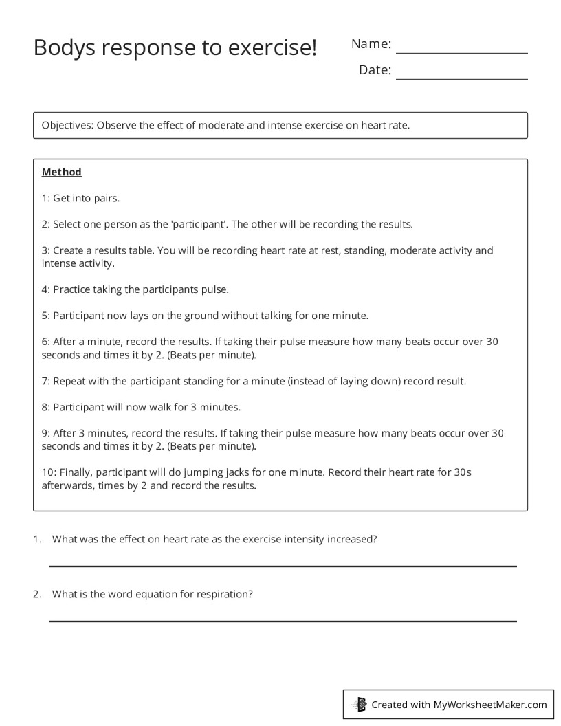 Bodys response to exercise My Worksheet Maker: Create Your Own