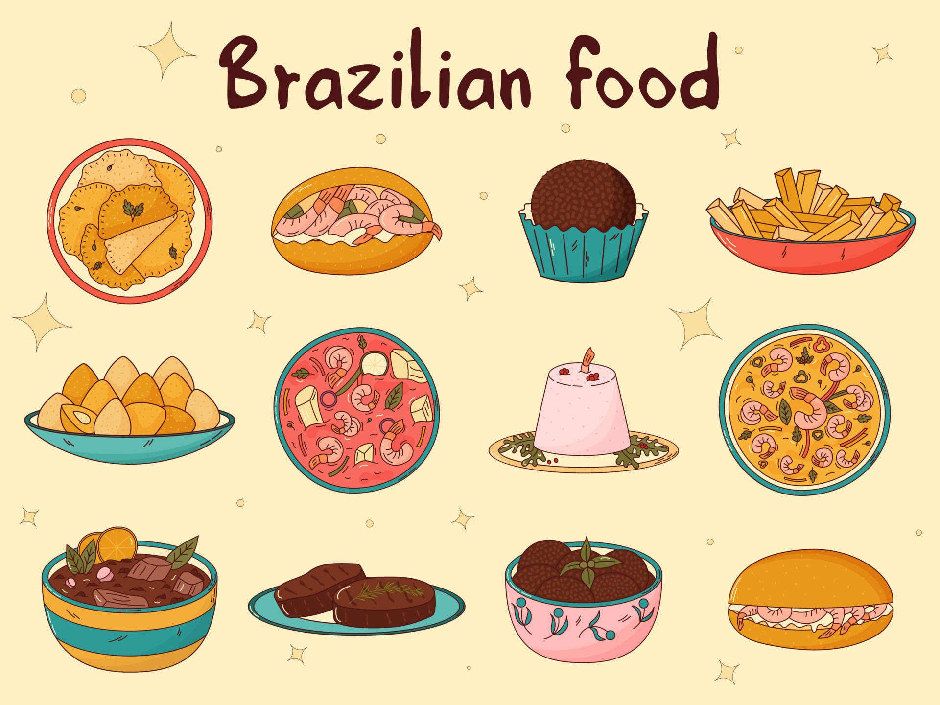 Set of Brazilian traditional food Vector illustration in hand drawn