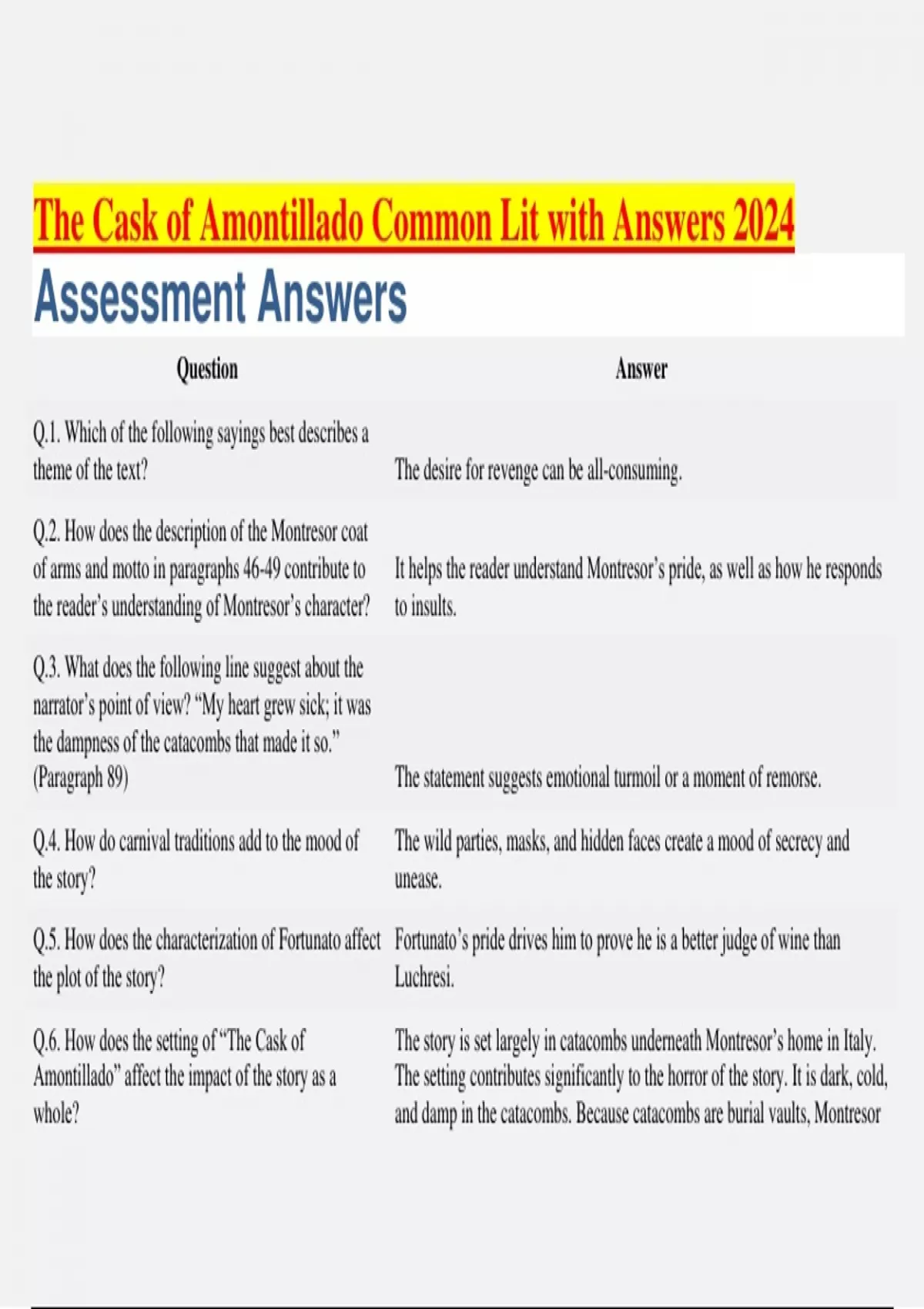 The Cask of Amontillado Common Lit with Answers 2024 The Cask of