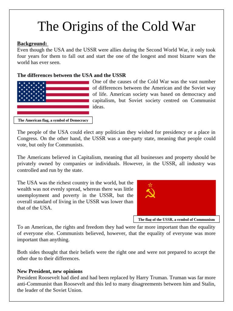 The Origins of The Cold War Worksheet PDF Joseph Stalin Soviet Union