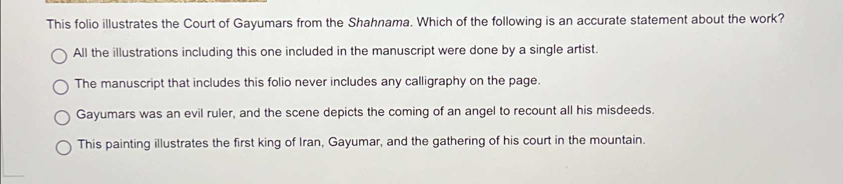 Solved This folio illustrates the Court of Gayumars from the Chegg com