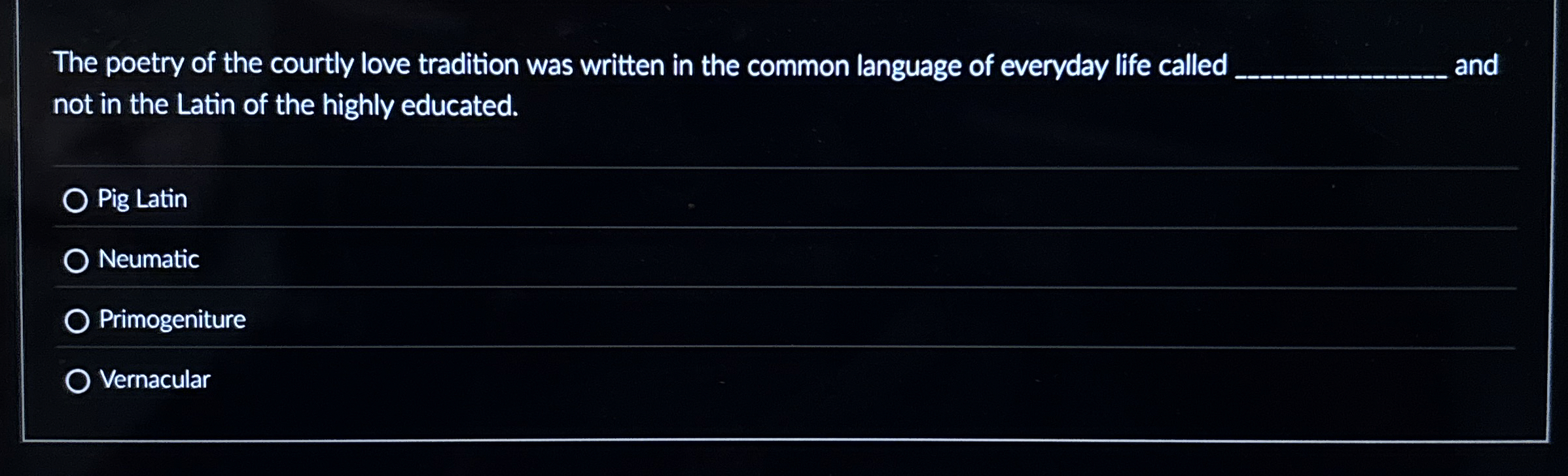 Solved The poetry of the courtly love tradition was written Chegg com